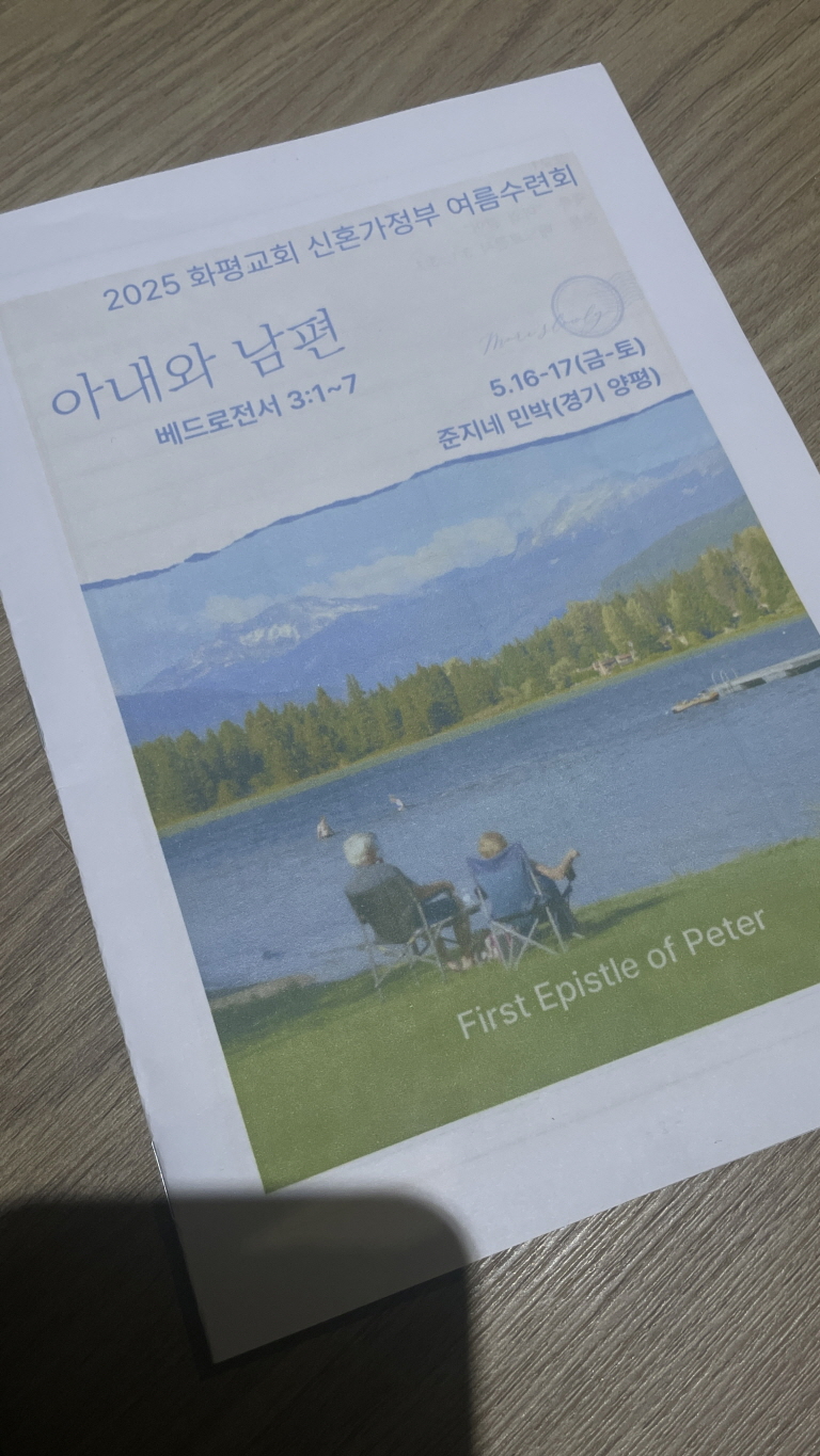 | - | 신혼가정부 여름수련회(5.16-17 금-토, 준지네 민박) | 화평교회 | 2025-05-21 |