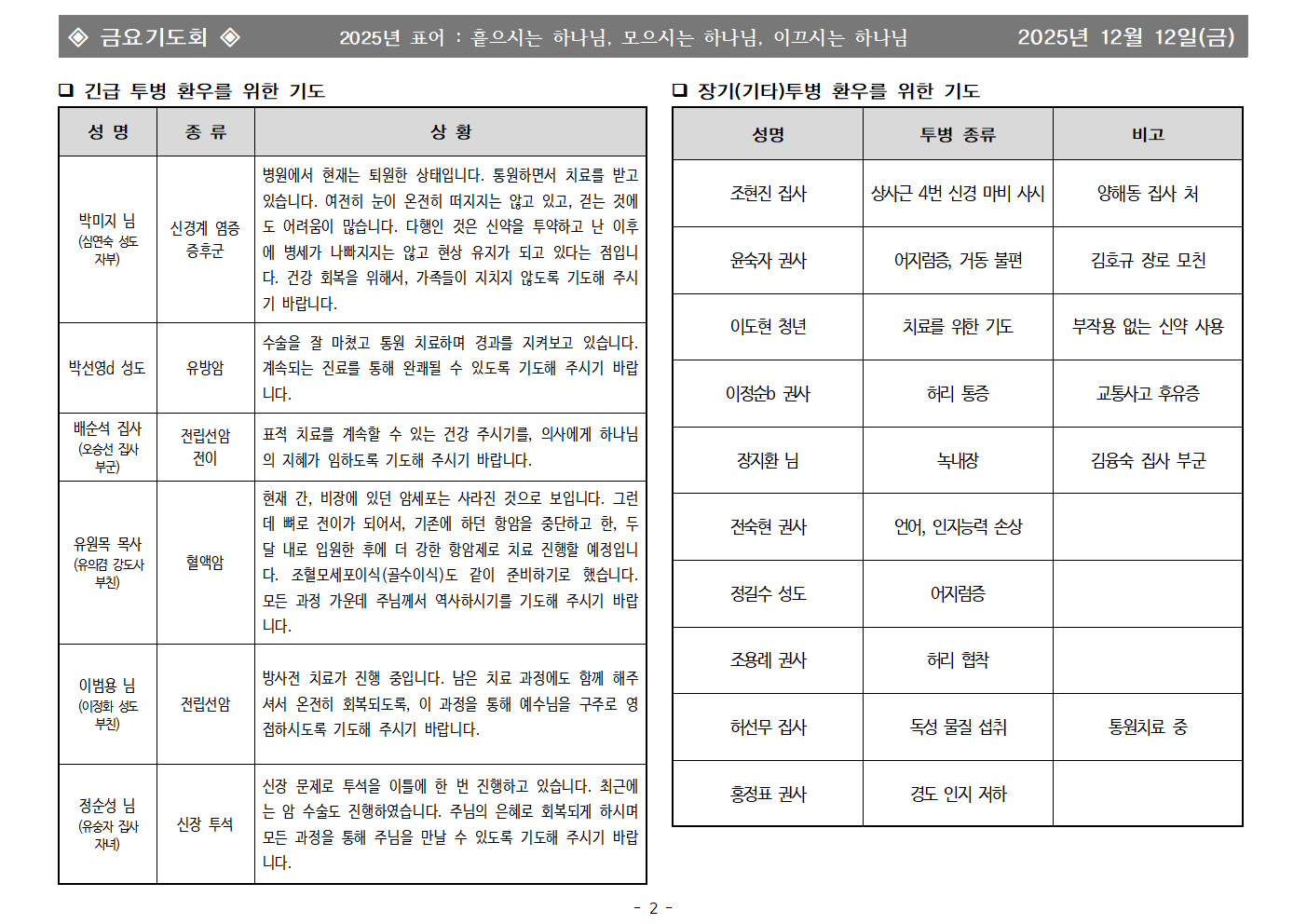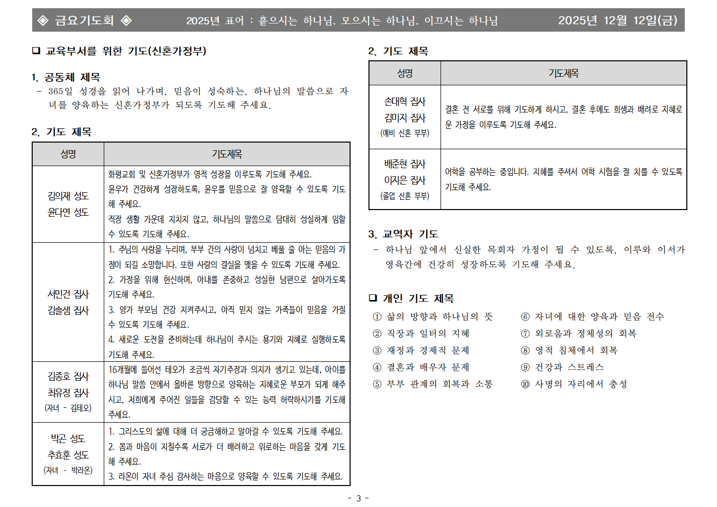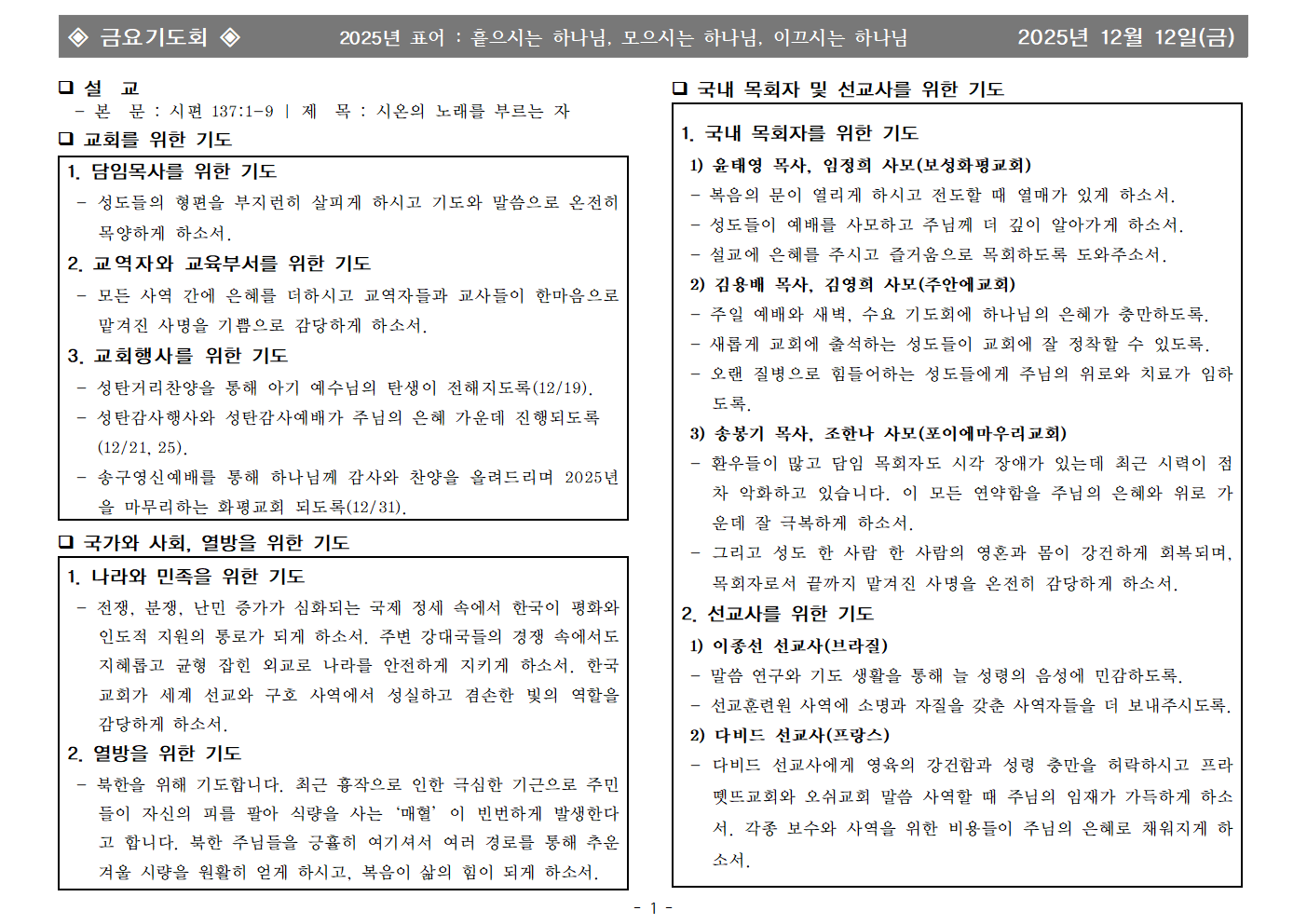 | - | 2025년 12월 12일 금요기도회 합심기도 | 화평교회 | 2025-12-12 |