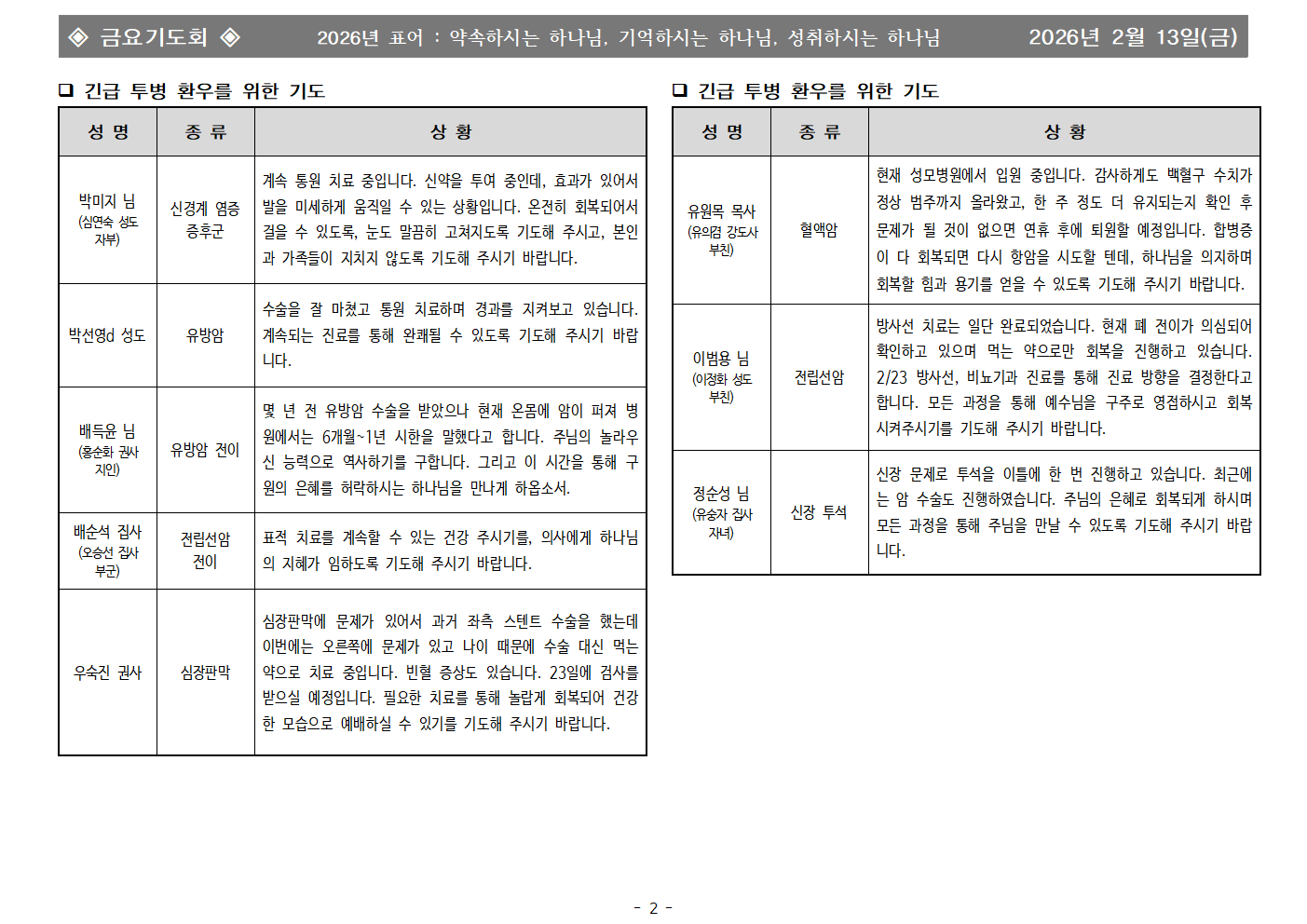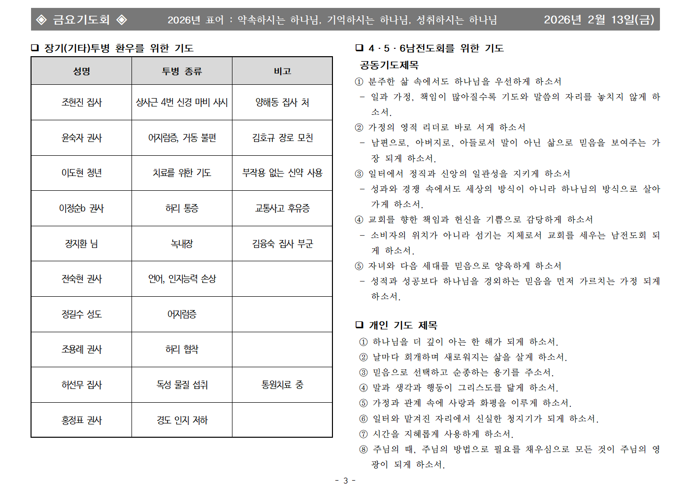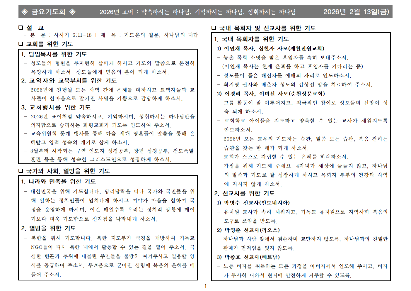| - | 2026년 2월 13일 금요기도회 합심기도 | 화평교회 | 2026-02-13 |