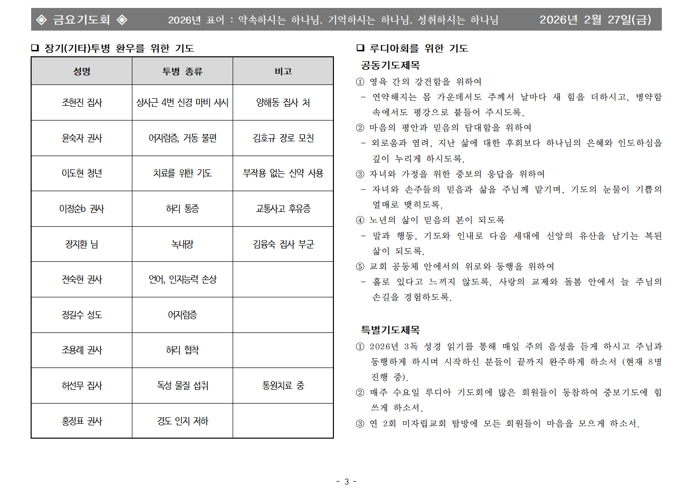 | - | 2026년 2월 27일 금요기도회 합심기도 | 화평교회 | 2026-02-27 |