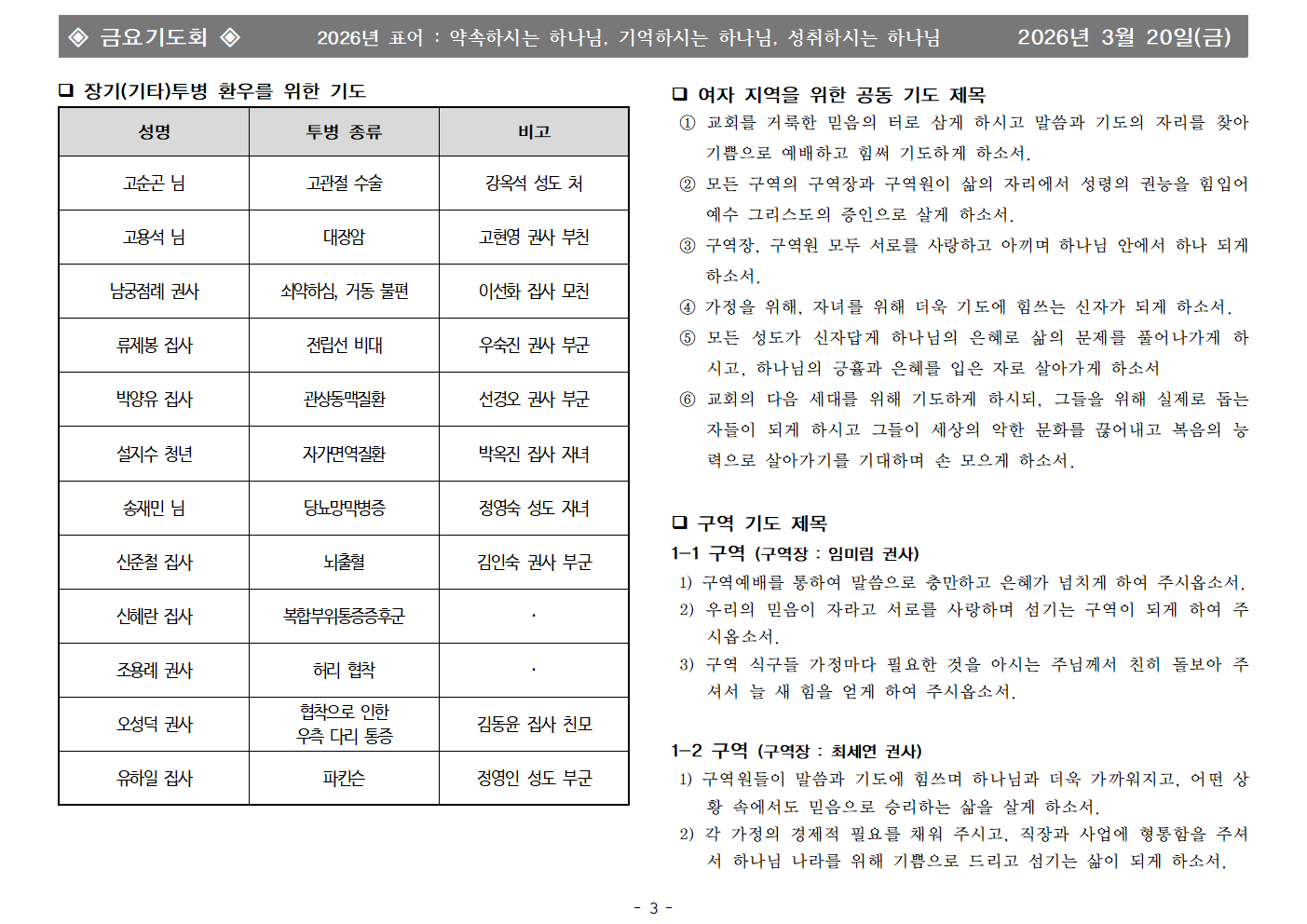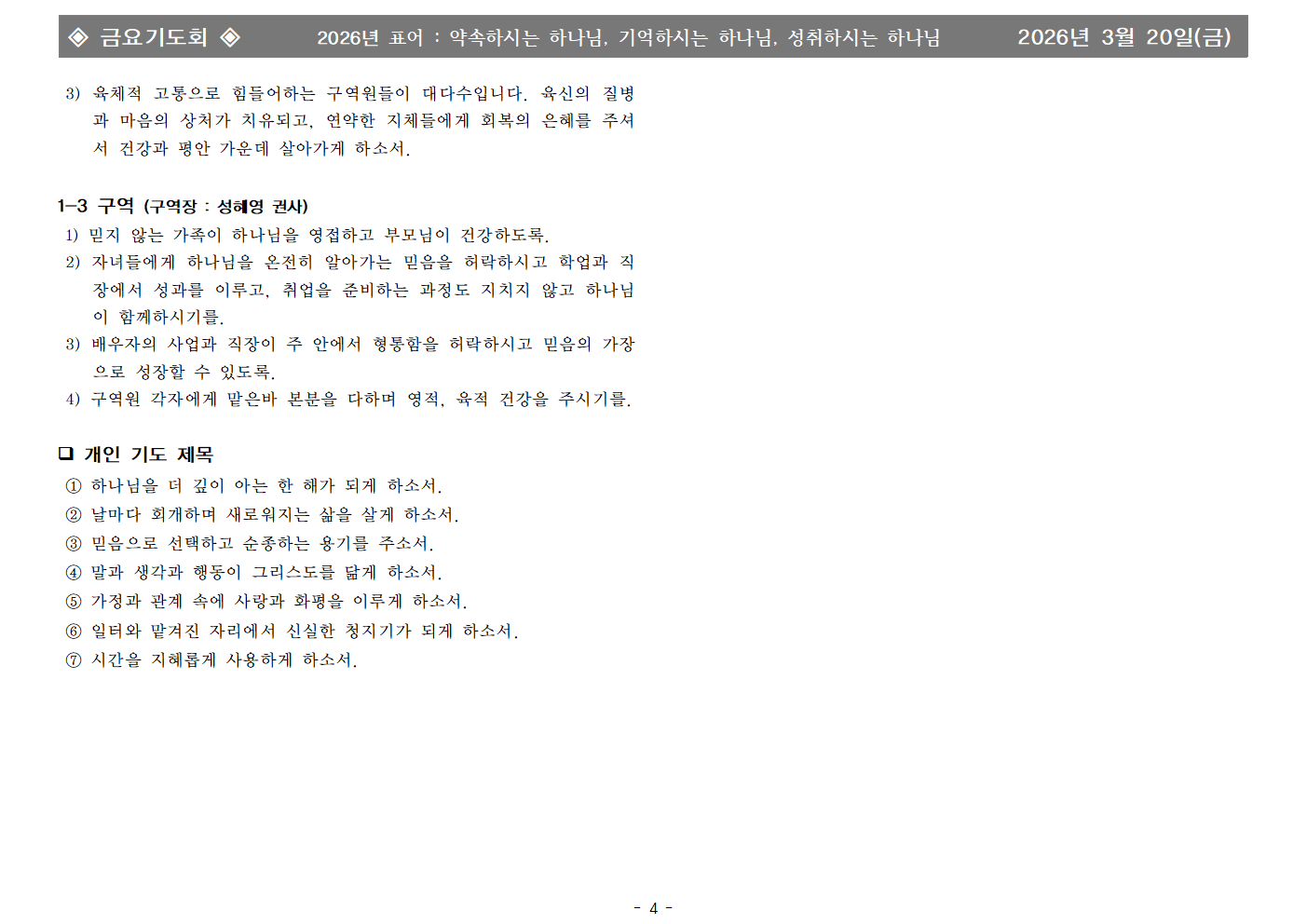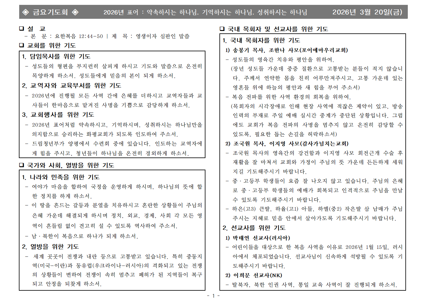 | - | 2026년 3월 20일 금요기도회 합심기도 | 화평교회 | 2026-03-20 |