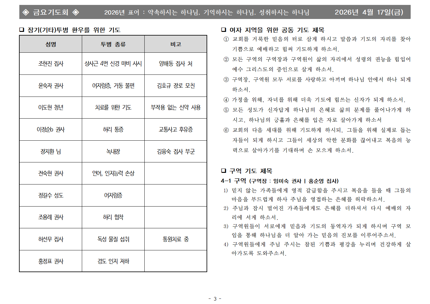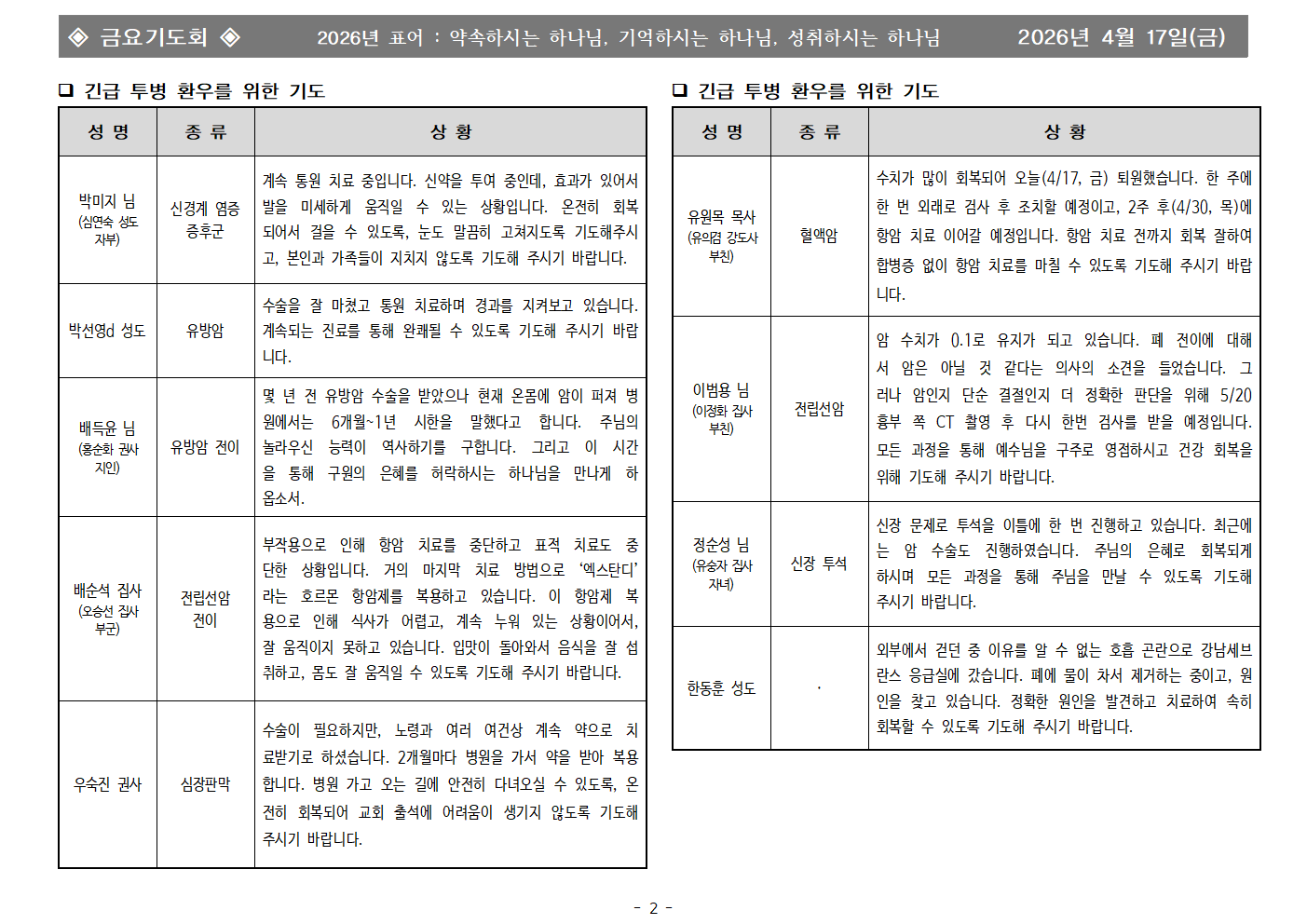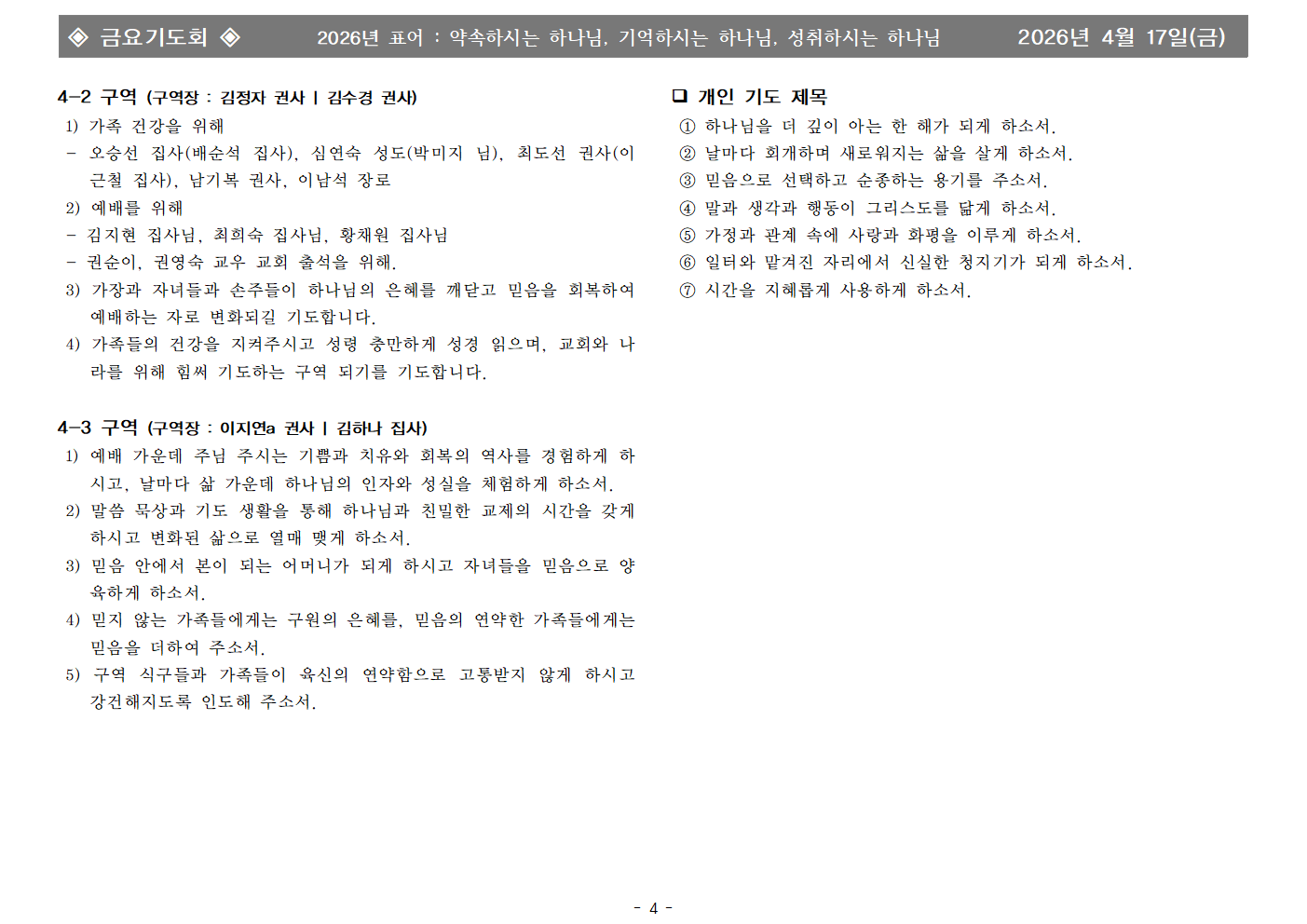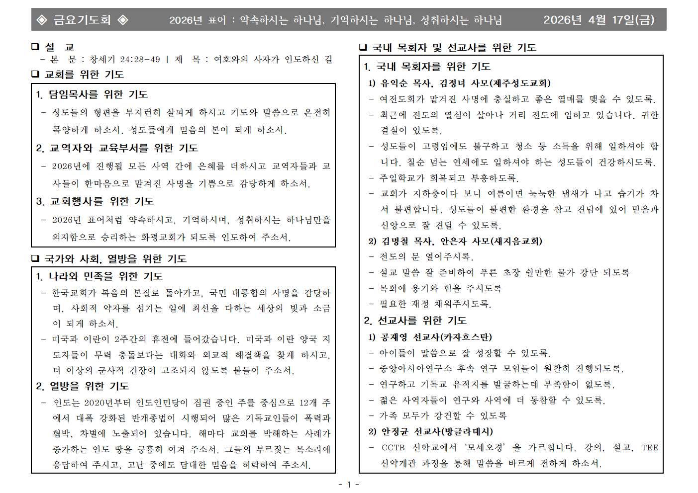 | - | 2026년 4월 17일 금요기도회 합심기도 | 화평교회 | 2026-04-17 |
