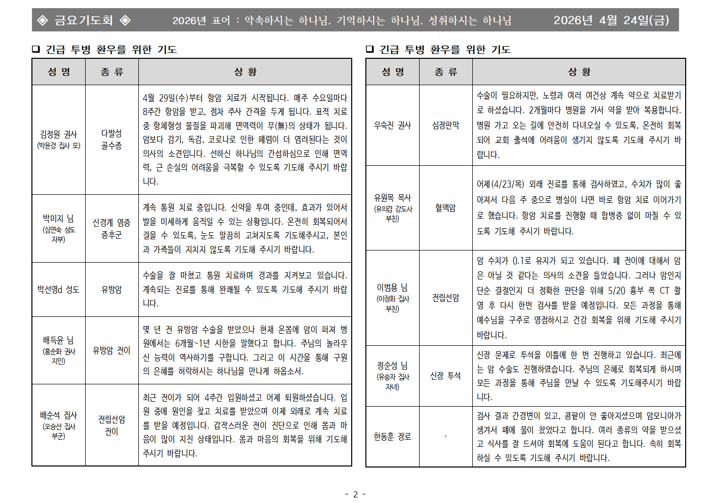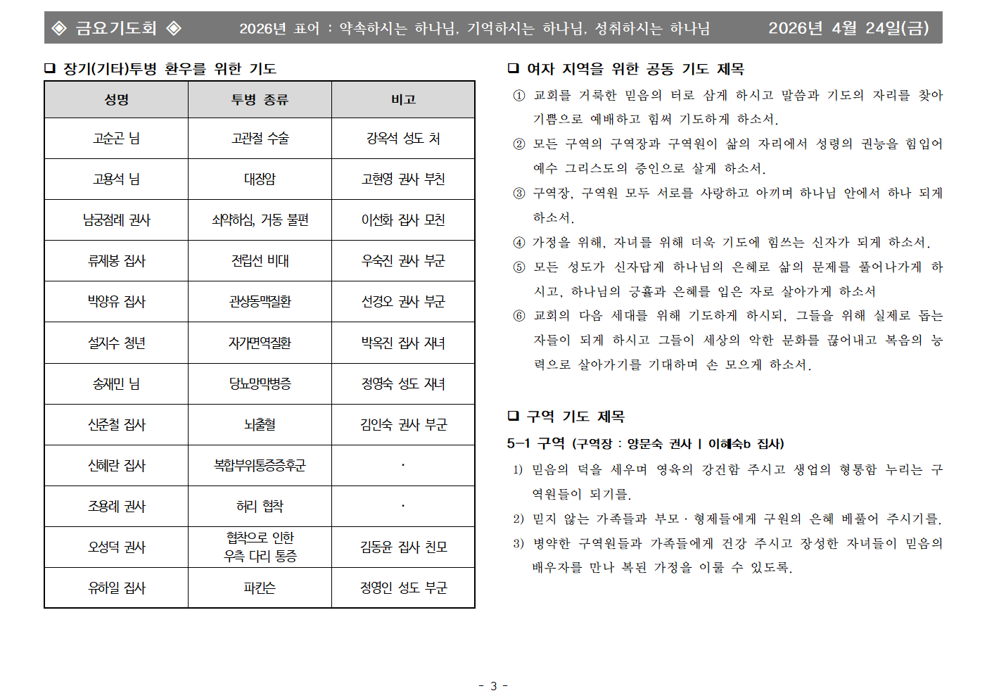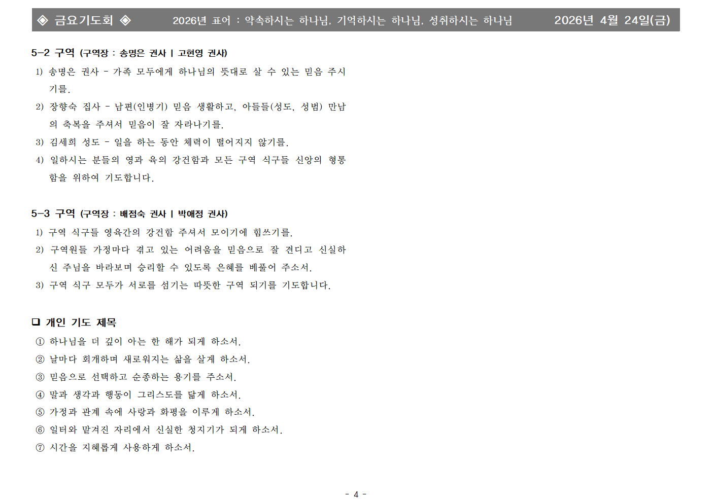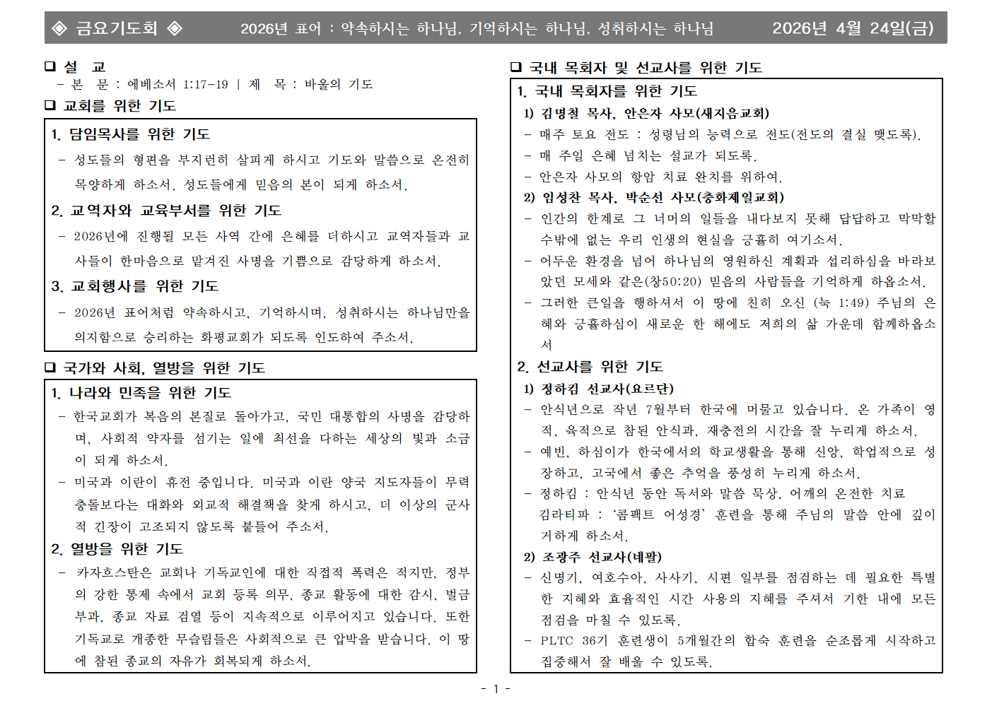| - | 2026년 4월 24일 금요기도회 합심기도 | 화평교회 | 2026-04-24 |