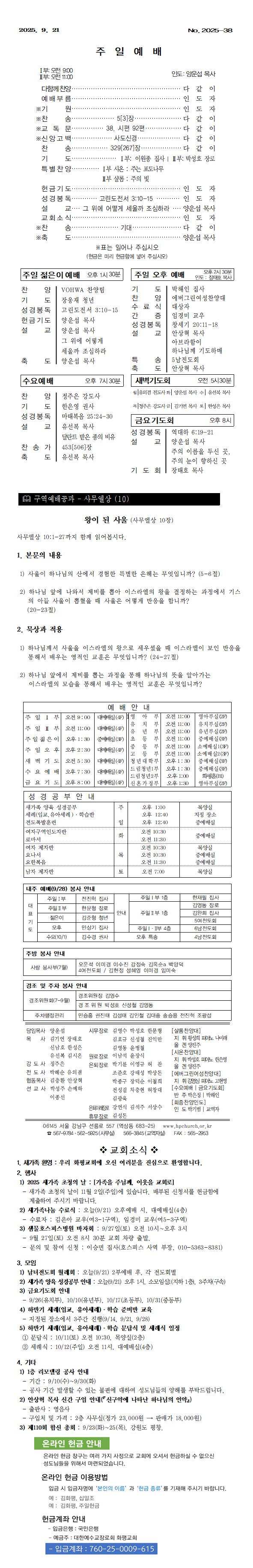 - | 2025년 9월 21일 주보 | 화평교회 ![]() | 2025-09-19 |