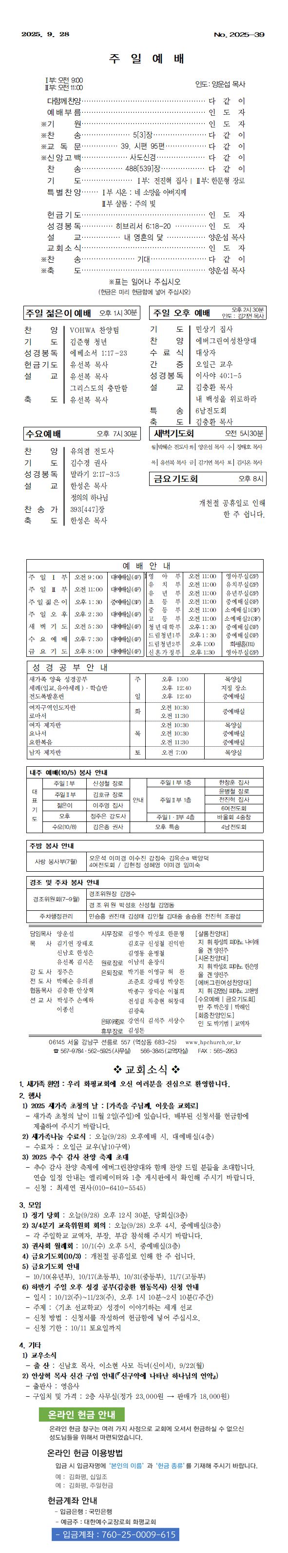 - | 2025년 9월 28일 주보 | 화평교회 ![]() | 2025-09-27 |